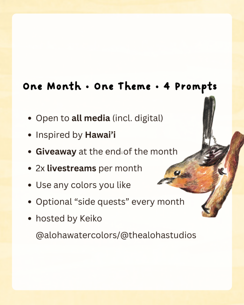 The #Aloha26Challenge both on @alohawatercolors and @thealohastudios Instagram accounts (ongoing throughout 2026) with a giveaway and live streams via my Youtube channel,
